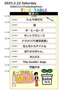« イベント一覧 このイベントは終了しました。 2025年2月22日 難波Mele DADAフェス×PunkyShgzParty « VALENTINE DAY pre. 「Sweets Paradise」 THE NOiSE pre. THE NOiSEのHOP!SLIP!TOUR » 開場:15:00 開演:15:30 前売:¥2500 学生¥1500 当日:¥3000 カレンダーに追加 Google カレンダー iCalendar Outlook 365 Outlook Live 詳細 日付: 2025年2月22日 イベントカテゴリー: LIVE 会場 難波Mele 大阪市浪速区元町1-2-2井上難波ビルB1F + Google マップ 電話番号 06-6634-1539 会場 のウェブサイトを表示する この公演を予約する ご予約名 必須 メールアドレス 必須 ご予約枚数 必須 12345678910 その他何かあればご記入ください (任意)